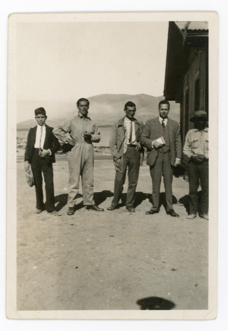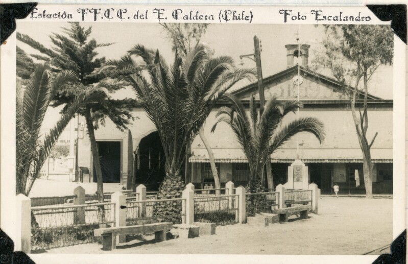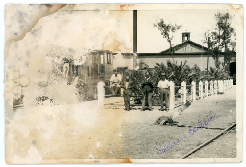 [Trabajadores en la estación de trenes de Caldera] [Fotografía].
