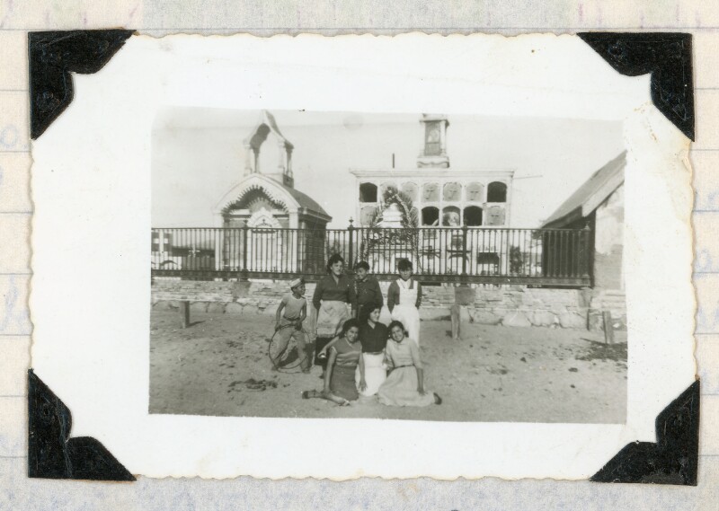 [Grupo de mujeres al exterior de una casa] [Fotografía].
