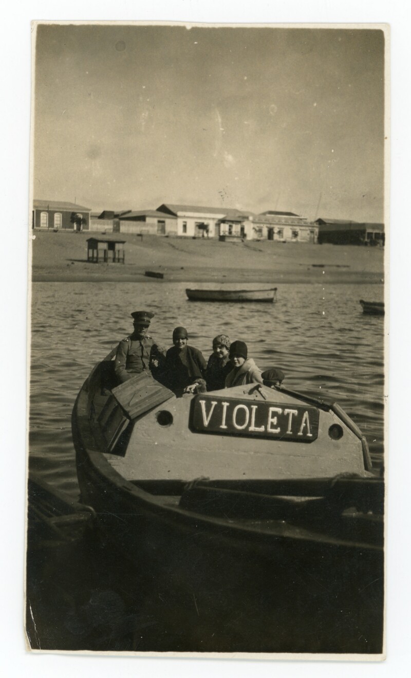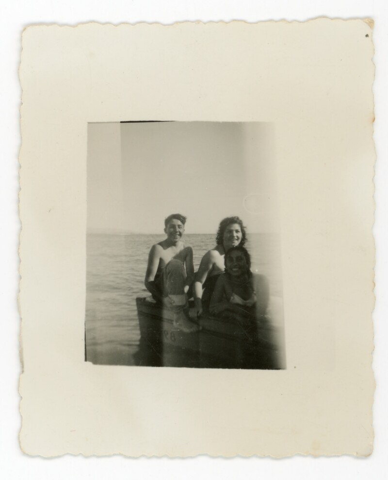 [Una mujer y dos adolescentes paseando en bote] [Fotografía].