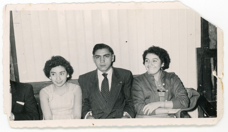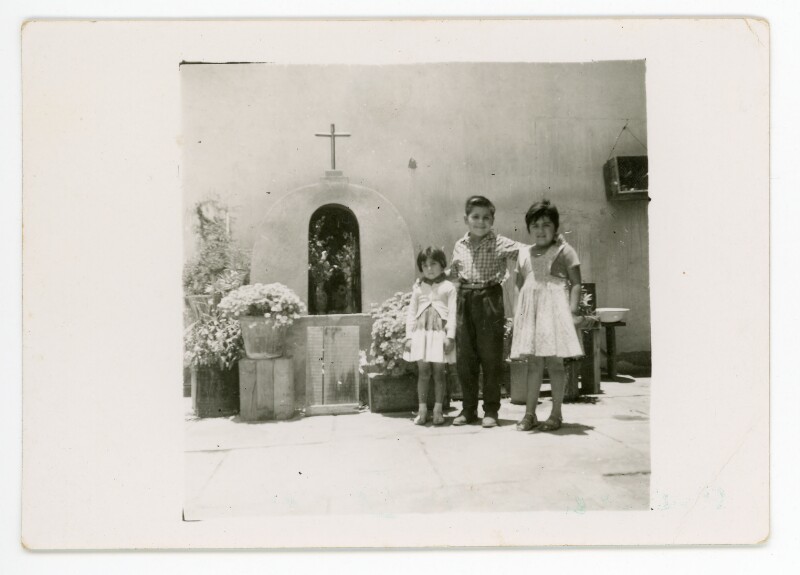 [Hermanos Páez Campusano delante de una gruta: Gloria, Antonio y Rosa] [Fotografía].