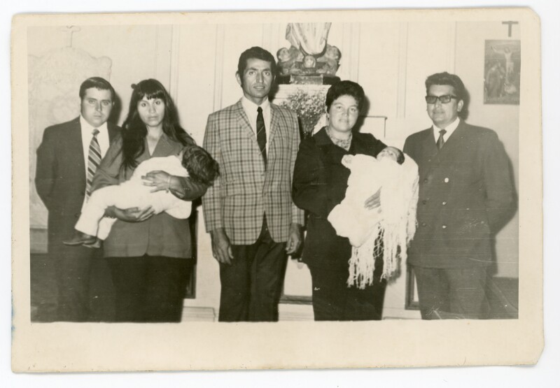 [Retrato grupal mixto del bautizo de dos bebés] [Fotografía].