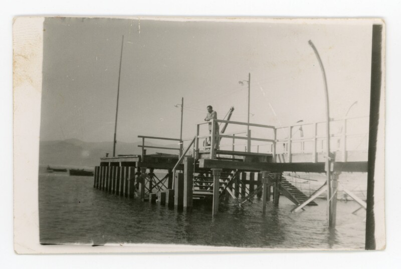 [Hombre de pie en el muelle nuevo de Caldera] [Fotografía].
