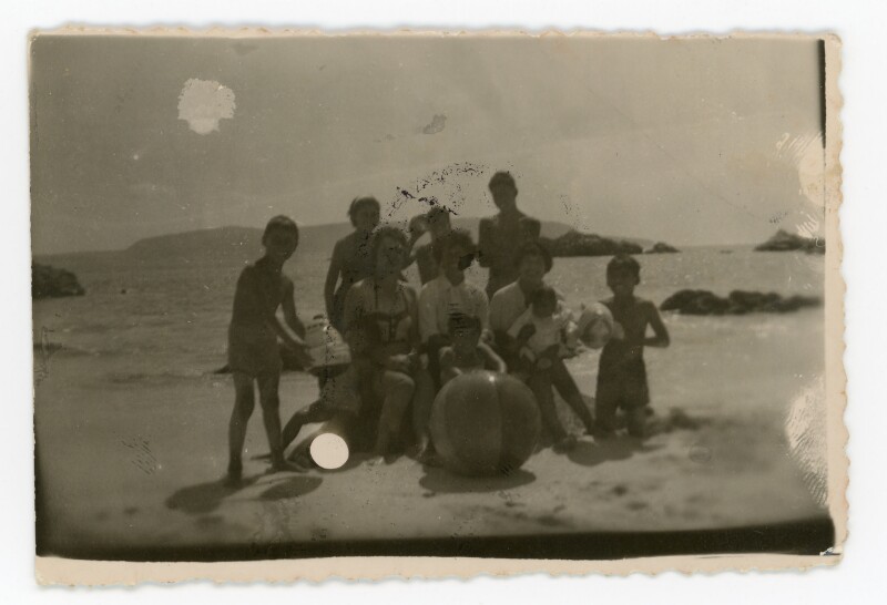 [Retrato mixto de grupo familiar en playa] [Fotografía].