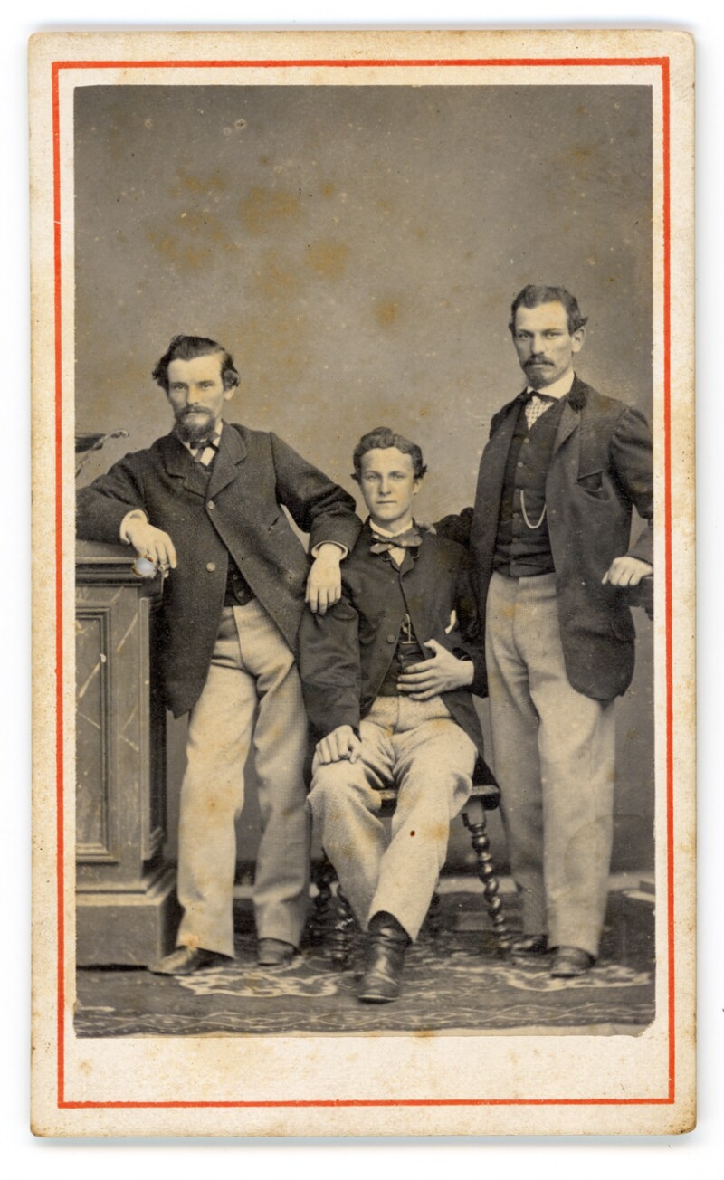 [Retrato grupal de tres hombres vestidos de traje] [Fotografía].
