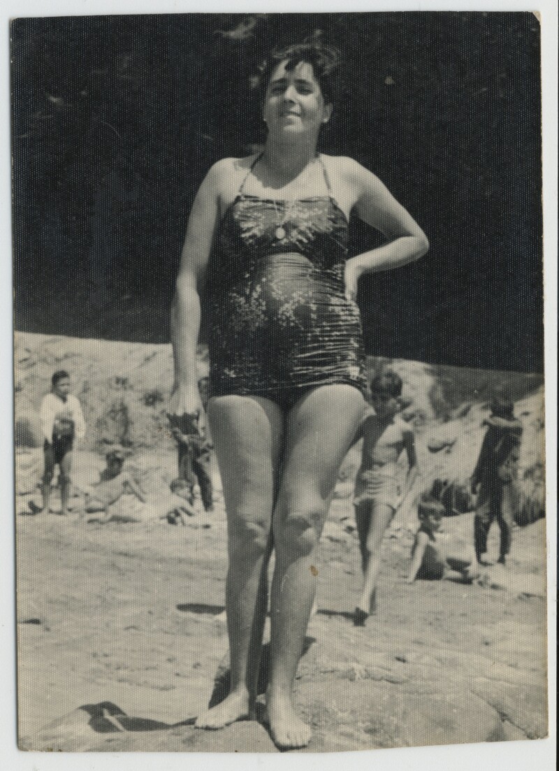 [María Dureaux de Paseo en la playa] [Fotografía].