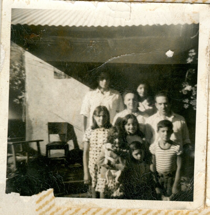 [Familia Salinas Salinas en el patio de una casa : Cupertino Salinas Jara, María Salinas Urbina, Ricardo Salinas Salinas, Teresa Salinas Salinas, María Salinas Salinas, Raquel Salinas Salinas] [Fotografía].