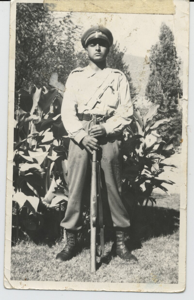 Ernesto Lemus Oyanedel sosteniendo su arma de servicio [Fotografía].
