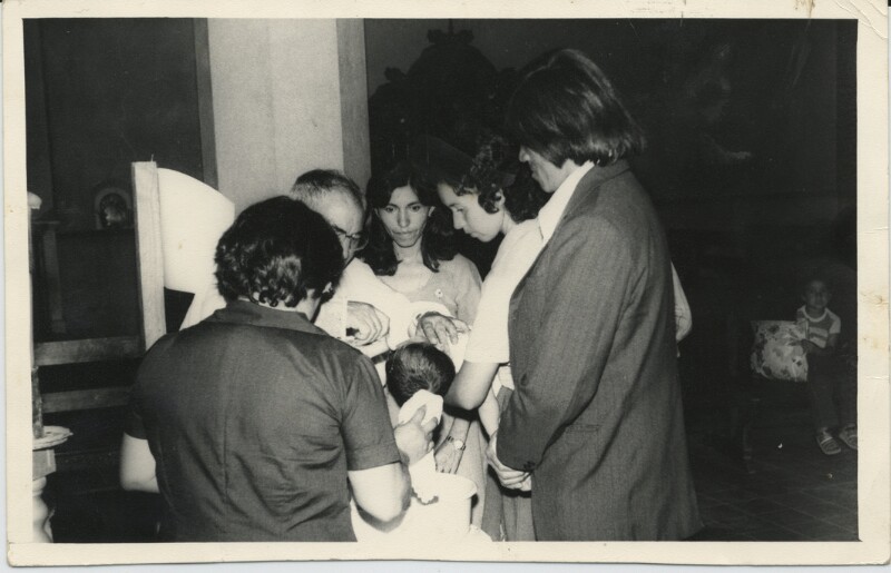 Bautizo de Fredy Leiva : Eva Rodríguez, Ismael Leiva, María Leiva, Elio Morales [Fotografía].