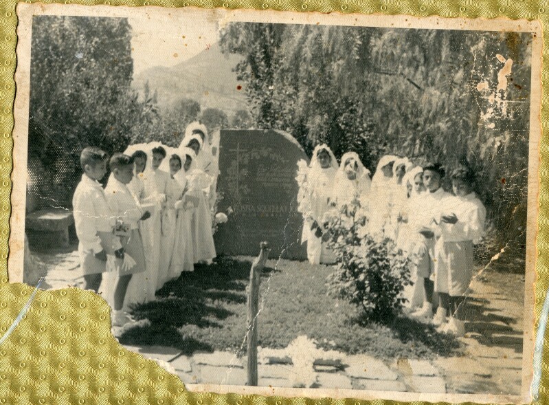 Niños y niñas el día de su primera comunión visitando la tumba de doña Rosa Squella de Jordán [Fotografía].