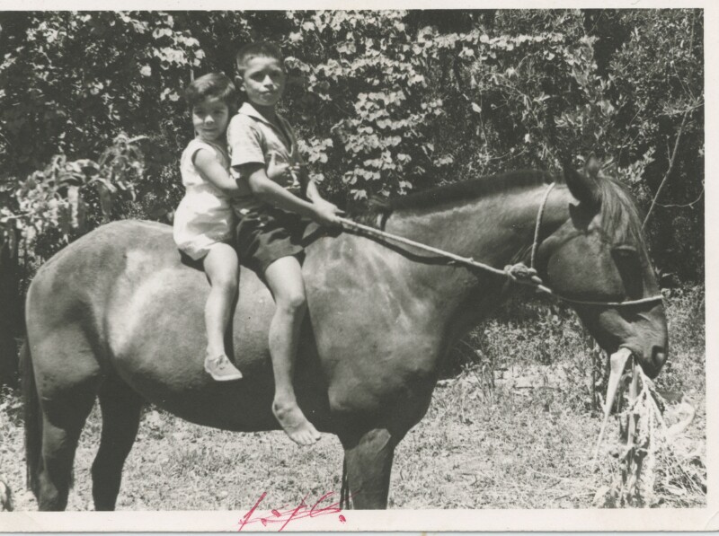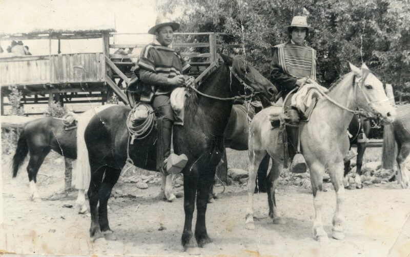 Segundo Contreras Vargas junto a un amigo montando caballos [Fotografía].