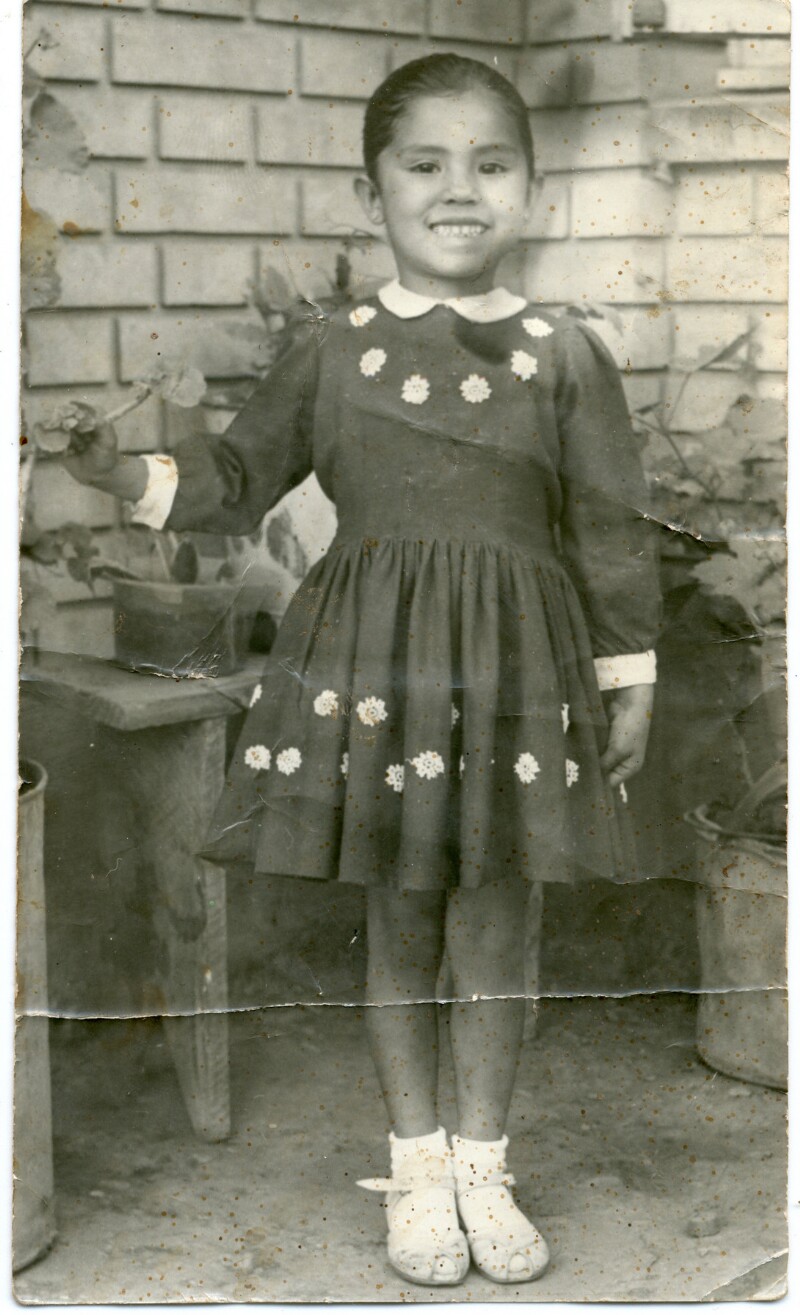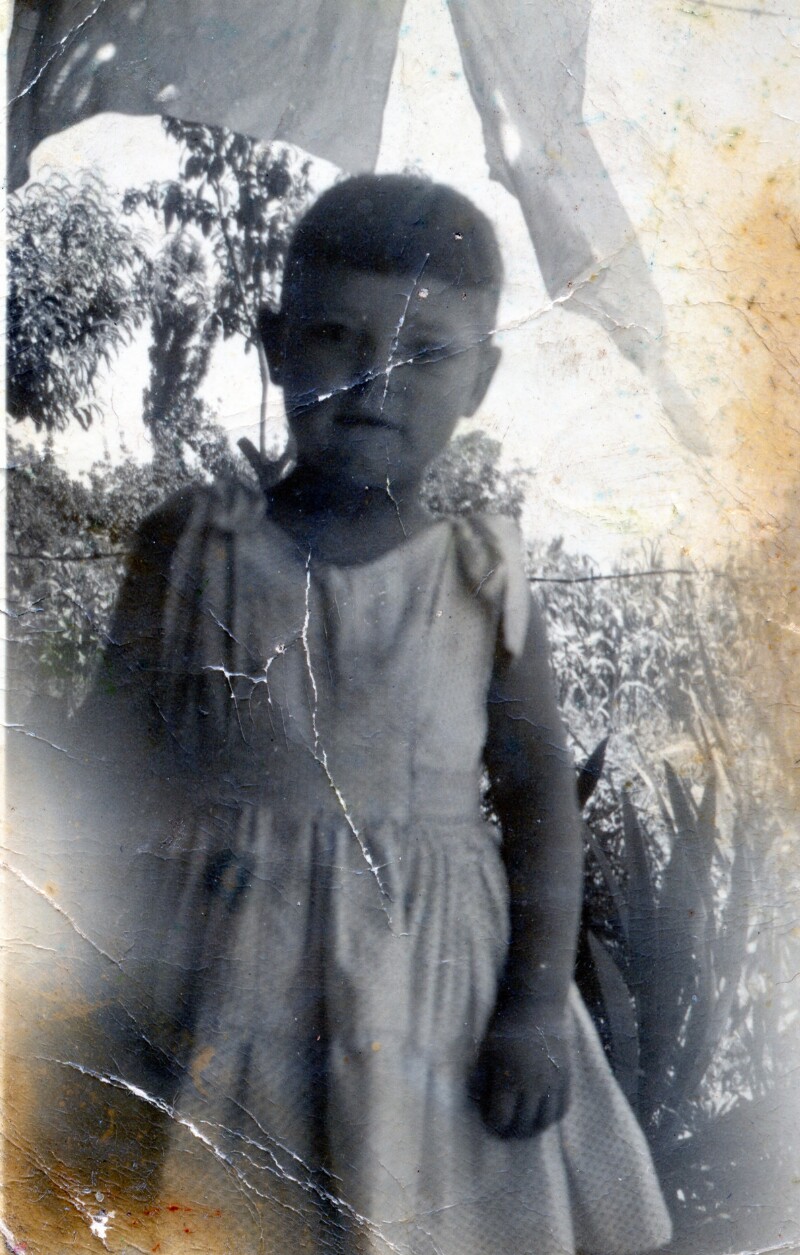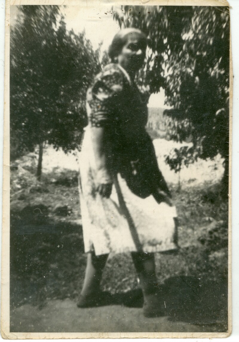 Cecilia Contreras en el jardín de la casa de su abuelo en Pocuro [Fotografía].