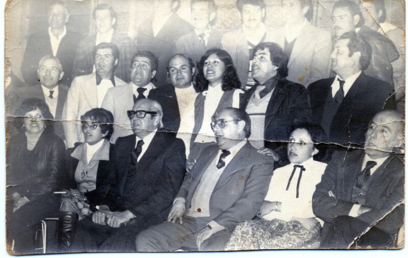 Celebración de Fiestas Patrias : Celestino Campos Carvajal, Alfredo Ortega, Ignacio, Marco Martinez, Juan Olivares,Rosamel Campos Carvajal, Ana María Lopez Olivares, Ricardo Salina, Perto Salinas [Fotografía].
