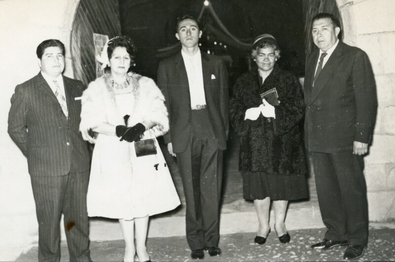 Recuerdo del día de la primera comunión de Nelson Castillo : Emilia Tapia, Luis Salinas Alfaro, Fernando Casanova [Fotografía].