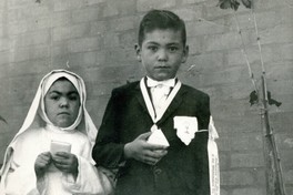 Recuerdo de la primera comunión de Hernán Fernández Vidal y Flor Fernández Vidal [Fotografía] Chile : [Editor no identificado] , 1952. 1 Fotografía : Formato digital. .