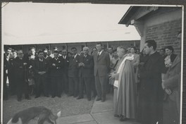 Actividad de bendición del Complejo para trabajadores de la Hacienda San Vicente [Fotografía]. Chile : [Editor no identificado] , [1953]. 1 Fotografía : Formato digital. .