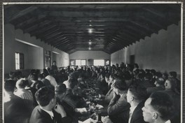 Comedor central del complejo para trabajadores de la Hacienda San Vicente : Hugo Jordán Guerra [Fotografía]. Chile : [Editor no identificado] , [1953]. 1 Fotografía : Formato digital. .