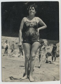 [María Dureaux de Paseo en la playa] [Fotografía]. Chile : [Editor no identificado] , 1955. 1 Fotografía : Formato digital. .