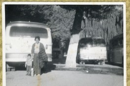 Madre con su pequeño hijo en terminal de buses [Fotografía]. Chile : [Editor no identificado] , [19--]. 1 Fotografía : Formato digital. .