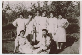 [Compañeras de curso de la Escuela Técnica Femenina de Los Andes : María Salinas, Fresia Urbina, Miguelina González, Rosa Figueroa, Inés Ponce, Cecilia Caicedo] [Fotografía].
