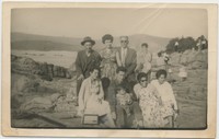 [Grupo de personas de paseo en la playa : Aclicio Gallardo, Nora Ortega, Atilio Gallardo, Manuel Cabrera, Patricio Cabrera, María Gallardo Salinas, Hipolita Gallardo Salinas] [Fotografía].