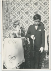 Recuerdo de Primera Comunión de Jorge Guillermo Contreras Vergara [Fotografía]. Chile : [Editor no identificado] , 1964. 1 Fotografía : Formato digital. .