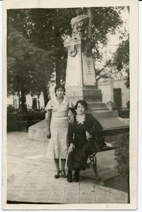 Blanca Elena Clavijo junto a una mujer en la Plaza de Los Andes : [Fotografía]. Chile : [Editor no identificado] , [1918]. 1 Fotografía : Formato digital. .