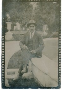 [Aurelio Segundo Contreras Vargas en la plaza Los Andes] [Fotografía]. Chile : [Editor no identificado] , [1915]. 1 Fotografía : Formato digital. .