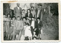 Grupo de familiares y amigos : Aurelio Muñóz, Ernestina Reinoso, Alberto Muñoz, Don Anibal, Humberto Berríos, José Aurelio Muñoz, Manuel Reinoso, Julia Reinoso [Fotografía]. Chile : [Editor no identificado] , 1945. 1 Fotografía : Formato digital. .