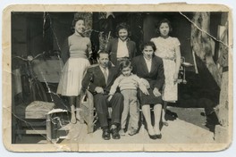 [Familia Salinas Salinas en el patio de una casa : Cupertino Salinas Jara, María Salinas Urbina, Ricardo Salinas Salinas, Teresa Salinas Salinas, María Salinas Salinas, Raquel Salinas Salinas] [Fotografía]. Chile : [Editor no identificado] , 1954. 1 Fotografía : Formato digital. .