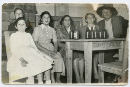 [Familia Salinas Santibañez compartiendo en una mesa: Cupertino Salinas, Damiana Santibañez, Ana Salinas, Marta Salinas, Emelina Tapia, Gumensino Santibañez] [Fotografía]. Chile : [Editor no identificado] , 1960. 1 Fotografía : Formato digital. .