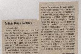 Edificio Diego Portales [artículo] / Juan Sabbagh P., Pdte. Colegio de Arquitectos de Chile. [Santiago] : La Tercera, 12 de marzo de 2006. La Tercera. -- (12 marzo 2006), página 3. 1 página ; 11 x 11 cm. .