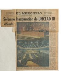 Solemne inauguración de UNCTAD III Allende [artículo] : [Santiago] : El Mercurio, 14 de abril de 1972. El Mercurio. -- (14 abril 1972), página 1. 1 página : fotografía en color ; 31 x 19 cm. .
