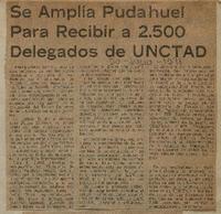 Se amplía Pudahuel para recibir a 2.500 delegados de UNCTAD [artículo]. [Santiago] : El Mercurio, 30 de julio 1971. El Mercurio. -- (30 julio 1971), página 23. 1 página ; 14 x 14 cm. .