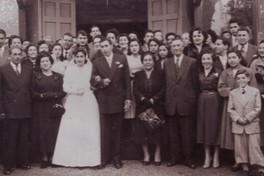 [Retrato grupal mixto del matrimonio de Georgina Montenegro Cortés y Juan Manuel Rojas Silva] [Fotografía]. Chile : [Editor no identificado] , 1954 1 Fotografía : Formato digital. .