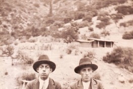 [Francisco Díaz y Augusto Labarca sentados en los durmientes del puente La Finca] [Fotografía].
