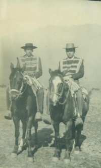 [Gilberto Carvajal y Francisco Ponce montando a caballo en El Tumbao] [Fotografía]. Chile : [Editor no identificado] , 1959 1 Fotografía : Formato digital. .