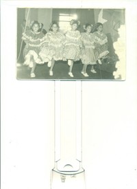 [Grupo de niñas bailando en la velada escuela cerro Blanco] [Fotografía]. Chile : [Editor no identificado] , 1950 1 Fotografía : Formato digital. .
