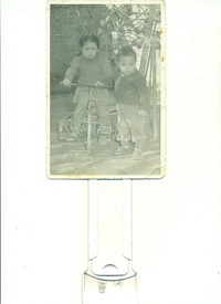 [Retrato de Rosa Bugueño Lizama sobre un triciclo junto a su hermano Francisco] [Fotografía]. Chile : [Editor no identificado] , 1950 1 Fotografía : Formato digital. .