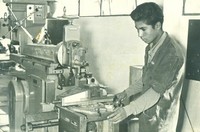 En la fotografía se aprecian alumnos de la Escuela Industrial Siegfried Gildemeister en clase Práctica de taller mecánico, localidad Cerro Blanco Polpaico. La Escuela Industrial formaba parte de las facilidades y beneficios para los empleados que trabajaban en la planta de Cerro Blanco y habitantes de sus alrededores. La Escuela fue fundada el año 1960, tenía tres especialidades: mecánica, construcción y electricidad