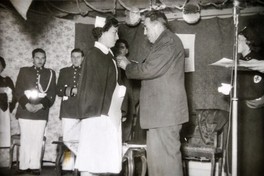Ceremonia entrega de medallas a voluntarias de la Cruz Roja de Til Til [Fotografía]. Chile : [Editor no identificado] , 1959 2 Fotografías : Formato digital. .