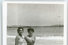 [Retrato grupal de dos mujeres en la playa] [Fotografía]. Chile : [Editor no identificado] , 1952. 1 Fotografía : Formato digital, monocromo. .