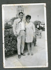 [Retrato de Carmen Aguirre y "Tito" Yañez en la plaza de Caldera] [fotografía] Chile : [Editor no identificado] , 1967. 1 Fotografía : Formato digital, monocromo. .