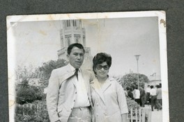 [Retrato de Carmen Aguirre y "Tito" Yañez en la plaza de Caldera] [fotografía]