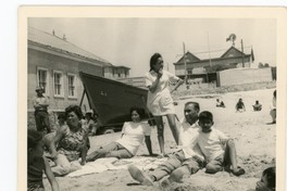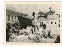[Retrato grupal mixto de paseo familiar a playa Mansa] [Fotografía]. Chile : [Editor no identificado] , 1973. 1 Fotografía : Formato digital, monocromo. .