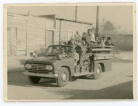 En la fotografía aparece: Guillermo Iribarren, Narciso Tamblay (conductor), Rogelio Nuñez y Antonio Páez Morales, entre otros.
