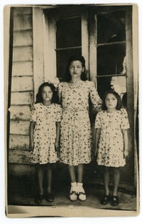 En la fotografía aparecen las hermanas Dora, Adela y Ester Páez Morales usando vestidos con el mismo diseño.
