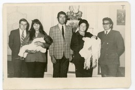 [Retrato grupal mixto del bautizo de dos bebés] [Fotografía]. Chile : [Editor no identificado] , 1970. 1 Fotografía : Formato digital. .