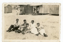 [Hombres sentados en la playa Mansa] [Fotografía]. Chile : [Editor no identificado] , 1944. 1 Fotografía : Formato digital, monocromo. .