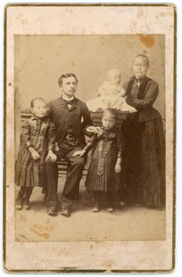 [Recuerdo Familiar de Santiago Tornini y Melesi Gugigiana junto a sus hijos] [Fotografía]. Chile : [Editor no identificado] , 1900. 1 Fotografía : Formato digital, monocromo. .