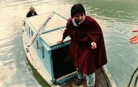 En la primera fotografía aparece Patricio Nahuel y Sara Miranda sobre una lancha en el mar.